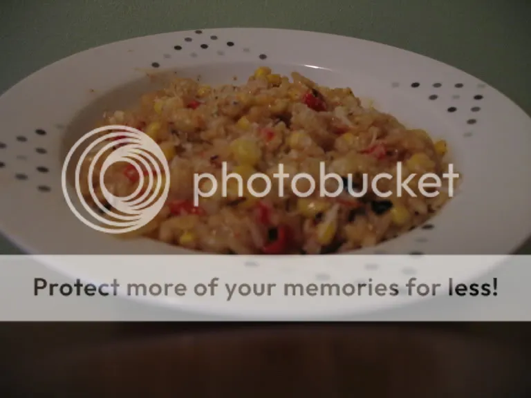 Thinking of the chowder, I’d also grabbed a ripe, red cubano pepper that was also a bargain at ninety-nine cents a pound. The pepper was fragrant and melted like, well, a roasted red pepper after blistering in a 400-degree oven for fifteen minutes. But a chowder it was not to be. Using some of the things I’d found around my kitchen (i.e. the last standing scallion shoot from the bunch), I came up with this crisp, smoky risotto, one of my favorite foods of all time. The key was not to cook the corn so long so that the kernels were crispy and juicy beside the oozy risotto.