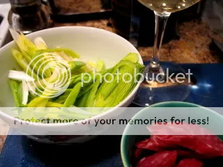 1 chinese sausage link, sliced thinly on a bias
