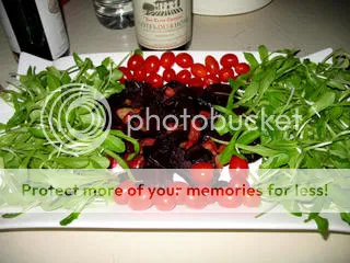 beets, greens and tiny toms
