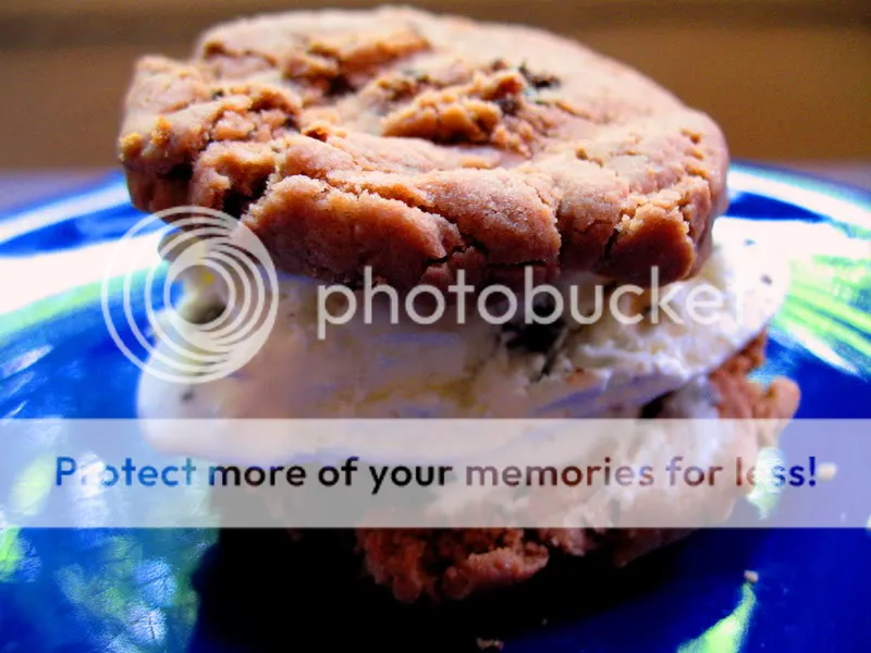 So to pamper my disappointment, I made chocolate chip cookies and smashed them together with the ice cream for some super chip-tastic creamity cool ice cream cookiewiches. It relieved the pain, alright.