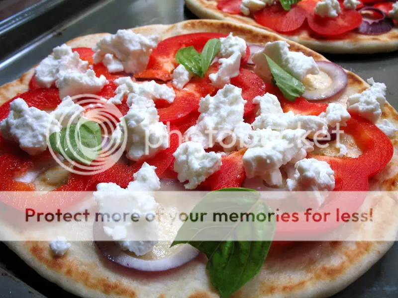 Red Pepper Pitzas with French Feta, Basil and Red Onion