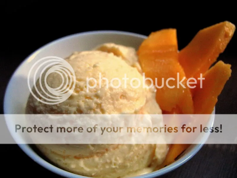 As further testimony of its overwhelming creaminess, I placed a scoop before Ben, who did not witness the cooking and had no idea what the orange stuff was (or was supposed to be) and asked him to guess. Apparently not being very familiar with mangoes, he could only come up with three things to describe it: “like apricots,” “creamy” and “buttery.” Ha!