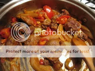 onions, tomato and pre-browned lamb starting to seep in the spice