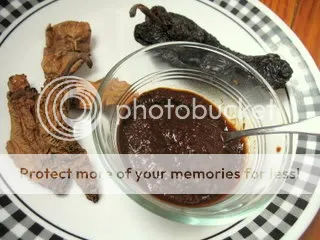 a few chipotles (i.e. smoked, dried jalapeno) and a sweet ancho (dried poblano) give way to a reddish chile paste