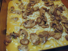 Breakfast Lasagna with Mushrooms, Bacon and Cheddar