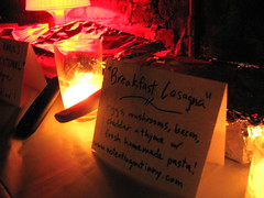 Hi Amandarae! The consensus at the (billiards) table had this as good — and what free food isn’t? But I daresay that the more traditional lasagnas won this round, for me at least. Like Karol’s Fontina (not mozzarella, Fontina!) cheese-smothered homemade tomato sauce-and-ricotta version… mmmm.
