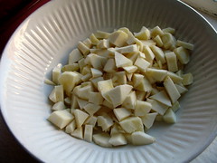 I was a teensy bit frustrated. But at least it still feels like spring, weather-wise, and given this I was dragging my bike around the market, squeezing through the tiny aisles trying to get an assessment of the final scraps of the day. Alas, the less desirable vegetables that remained were: cabbage, turnips, potatoes (including sweet potatoes), onions and a few carrots and parsnips. I snatched two of those spindly parsnips and loaded up for the week on sweet potatoes, just for a change, and with no idea on what I might do with them. Trying to eat seasonally and locally definitely has its limits. From now on, I’ll try not to augment those by getting to the market too late.