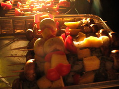 You’ll have to read why those namesakes make sense in their website. My friend Matt and I arrived at the supperclub on a very warm, springy weeknight and took our drinks out to the backyard patio. While chatting up other guests, we got a front-row view of the grill, which was just crackling with corn still in their husks. Adam, a former cook, was tending the grill and had already nicely charred some asparagus for an opening salad, and had rows of colorful kebabs lined up to go for the main course. The next few hours that followed were some of the most idyllic a sociable food lover can probably imagine. Before hopping on my bike for a short ride home, I had eight new friends, a full belly, and an invitation to come by and cook with them sometime. Does not eating out get any better than this?