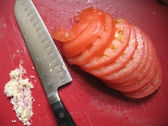 one juicy beefsteak tomato and 2 crushed garlic cloves