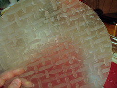 I used a very large Rubbermaid round bowl lid. I’d say the lid is about 14 inches. Water in the lid, dip the sheets, let drip a little bit, then onto the cutting board. Depending on the temp of the water, I let it sit a few seconds to soften up. Another thing I like to do, is use red or green leaf lettuce. I wrap the vermicelli and herbs in the lettuce leaf, place shrimp halves on wrapper, then the lettuce bundle on top of shrimp, and then roll. I like the look of the shrimp under the soft white of the wrapper in contrast with the lovely green of the lettuce. Plus the vermicelli sometimes gives me a headache while rolling, and it’s not so bad when it’s in the lettuce. Helps achieve a tighter roll. After I have made about 4 rolls, If it’s for a party or to be eaten later than 15 min, I wrap each roll in plastic wrap and stick them back in the fridge. They will keep for a few days. Very convenient in the summer when you are hot, and have the urge to snack late in the evening.