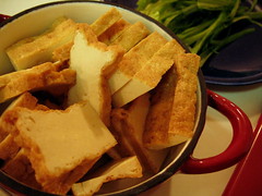 about half a small block of fried tofu, cut to 12 quarter-inch thick squares