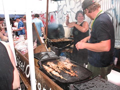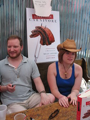 Next I chatted with pals Scott Gold (who I grilled a few months ago here), who was signing and selling copies of his meat manifesto The Shameless Carnivore, alongside Emily Farris, author of the upcoming cookbook Casserole Crazy. It seemed appropriate that there was a grill not too far away at Tamarack Hollow Farm‘s stand blasting smoke from juicy pork belly over to Scott’s table the entire time, where he sat assumably very contented.