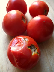 discount tomatoes from the Greenmarket, partially smushed, and perfect for sauces