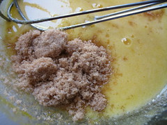 In a small bowl, beat the egg yolks with the sugars and spices until fluffy and the lighter in color. Set aside.