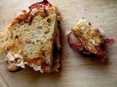 Yum! Last summer I made open faced plum sandwiches–toasted bread topped with roasted plums, fresh ricotta, arugula tossed with a balsamic vinagrette and topped with a few slices of proscuitto. Delish!