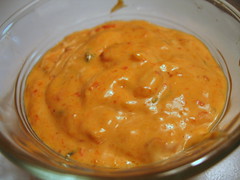 I made this tonight, and it was delicious. Skipped blending the pepper in mayo (I hate cleaning the machines) and left it sliced, but it was all very, very good. Thanks for the awesome inspiration!