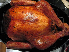Wednesday, November 26, 9:00 am: Cathy triple-bags a thirteen and a half pound free-range turkey pre-ordered from DiPaolo Farms via the Greenmarket and tucks it into a camper’s backpack. Heads off to the subway, gets off at Midtown. Explains something to startled co-worker as she takes turkey out of backpack, and stuffs it into office refrigerator. Tradition raises eyebrow.