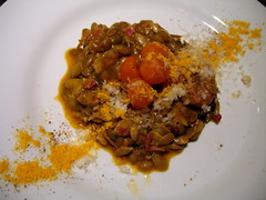 Serrano ham and ancho granita. I liked it because it was sweet and savory with a touch of spice but people resoundingly said it was wildly offensive.