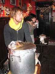It was a frigid Saturday in New York when seven chefs gathered in the back room at Jimmy’s No. 43 to unveil their steaming pots of the French countryside comfort food, cassoulet. A fluid stream of Greenmarket supporters sampled each one throughout the afternoon until pretty much every bean was scooped up. Asked to vote for their favorite takes, each taster turned their attentions to printed sheets describing the cassoulets, their creators and affiliations. Among them were local and seasonal culinary expert Kelly Geary of Sweet Deliverance, former Greenmarket Manager and chef-to-be Melissa Rebholz, Jimmy No 43’s own chef John Crabbs, Italian chef and traveling pizza teacher Mark Bello, Rockaway Beach surf taco shop extraordinaire Andrew Field, and former Pegu Club and wd-50 (whoa!) chef Phillip Kirschen Clark. Then some blogger and cook-off fanatic of Not Eating Out in New York.
