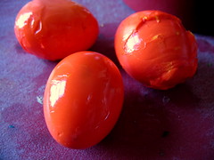 In the end, I’d say these yolk fillings looked prettier than their crater-faced, space-dyed egg white cups. I don’t have the guts to show photos of the worst-looking ones of the lot. Some of them were pretty terrible. What’s the deal, you can’t peel an egg? my friends would ask later that night, at an Easter house feast. WELL, and the anecdote about egg science began…