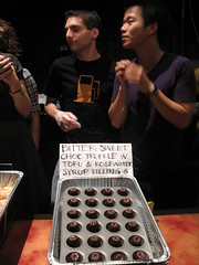 I hope everyone was ready for early dessert when the door was opened to the discotheque-looking bar at 4:30pm. Perhaps it only makes sense that tofu inspired the sweet tooth to such an extent, since at previous cook-offs for bacon and pork, the most savory things I can think of, desserts made a big showing there, too.