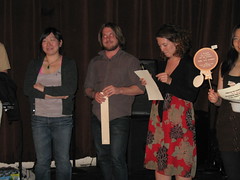 Clearly, both audience members and judges were on par with their favorite tofu takes of the evening. In total, more than 200 people came to the Takedown to eat and vote, and many have posted recaps and (better) photos of the event. In true NEONY cook-off recap fashion, this one is supposed to come with a recipe for the winning entry, and it’s coming soon, I promise (or rather, Sara Morrison promises). Have patience — the Ethiopian Empanada recipe awaits!