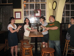 The judges spent a good hour or so deliberating together over how to place their winners. Turned out they were pretty split! The panel of local food authorities put together to judge the contest consisted of chef Mark Bello, who schooled me and everyone else at the Cassoulet Cook-Off, and who “schools” people for a living at his hands-on pizza workshops throughout the city; the erudite food blogger Zach Brooks, from Midtown Lunch, who I enjoy the company of so well even though our blogs are complete antitheses of one another that something’s either so wrong or so right in this world; and Erin Zimmer, a regular contributer and editor at Serious Eats — need I say any more to hail to the queen, baby? (Plus, Erin was in the process of moving this weekend but still made it down to chow!)