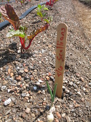 newly transferred scallions and beet greens