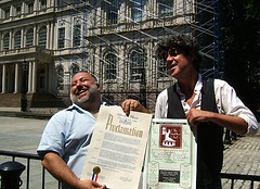 Good Beer-lords Jimmy Carbone of Jimmy’s No. 43 and Ray Deter of d.b.a. accepting a certificate of “Good Beer Month,” photo courtesy of Joe DiStefano