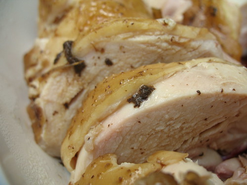 Two maple leaves: This dish is just chicken, with some ingredients used to season it. As admitted, the one I used was none too local nor humanely raised, but the two brownie points are intact for actually purchasing it whole; most of the chicken meat sold in the US are oversized breasts, boneless and skinless. The way I see it, this lends to a disconnection between the consumer and the animal he or she is consuming, and the cut preference responsible for the practice of plumping up the breasts of the chickens to the point that many are too off-balance to walk just before being slaughtered.