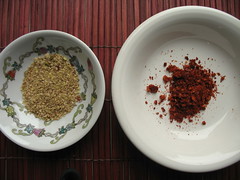 Not to be mistaken with dukkha, or the Four Noble Truths in Buddhism, dukkah is a spice blend originating from Egypt (don’t ask me if the pronunciation is any different). It has ground hazelnuts, pistachios, whole sesame seeds, and spices like cumin and coriander. It’s toasty and delightfully earthy sprinkled atop almost anything. I found a package of it from Juliet Mae Fine Spices & Herbs, thanks to Foodzie.com. Juliet’s mix is called “Classic Dukkah,” and unlike most of the spice mixes that you’ll find in this collection, it’s not really a spice you cook with foods—but spices that you sprinkle atop. Like a garnish that packs of punch of flavor in addition to texture.