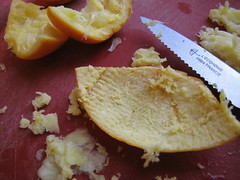 scraping the pith from quintuply-boiled orange peels with a serrated edge