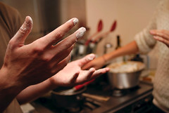 flour-coated hands from cookie-making (discovery: some people don’t use spoons!)