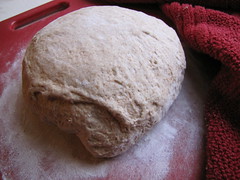 a soon-to-be whole wheat loaf of no-knead bread