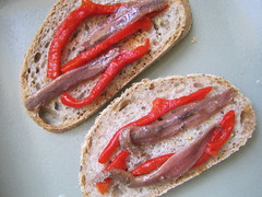 Hope was not lost; pickled peppers are easy to come by, and the rotund, race-car-red, sweet cherry peppers are also known as pimentos, which are found in jars everywhere. So I scored one at the regular supermarked, and moved onto the anchovy section. Pickled, brined and preserved fish is a big part of Scandinavian cuisines as well as ones all over, but in these parts, they tend to turn up a nose. Especially at the school cafeteria. But if you eat canned tuna, or did more often but are now concerned about the fish’s sustainability and mercury levels, you might want to give canned anchovies a chance. These are smaller fish, less likely to accumulate mercury and other contaminants in their short life span, and they’re full of valuable nutrients although high in sodium and oily when packed. They’re like compact pellets of pungency, though, so just a couple fillets go a long way in flavor.