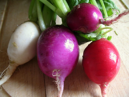 There’s much more besides food that you can enjoy from joining a CSA, though. In addition to becoming acquainted with all manner of radishes (like the Easter egg ones at top), I got to know many folks who live in my neighborhood from joining one last year. Visiting the farm that served my CSA, Sang Lee, and meeting the family that operated it was another wonderful bonus. I ate better, and for way less than eating “poorly,” for sure. And because my refrigerator was so full of good food most of the time, I had a lot of fun sharing it at picnics and parties. Clearly, I can’t say enough good things about joining a CSA, so I’ll stop and let someone else talk about it instead.