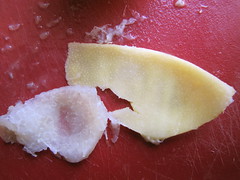 trimmed to just a thin wedge of peel