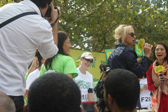 The biggest winner of the day was Molly Schuyler (center, in white cap), who trumped all of the men and even her own previous world record by eating 93 dumplings in two minutes. Yes, that’s right. She looked happy afterwards but said she had been hoping to break 100.