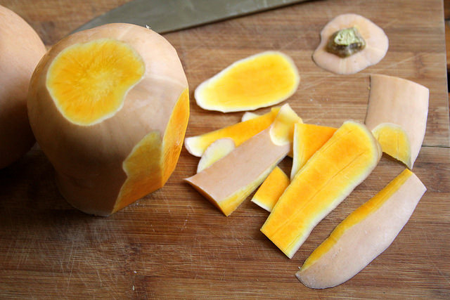 Actually, I’ve wanted to revisit squash soup for a while. It seems we’re always spiking it with stuff like curry powder or coconut milk, tossing apples, chorizo or honey in it, that we don’t get to experience the pure essence of squash enough. Or enjoy squash enough at all? I found it surprising that the Northeast eats more squash on Thanksgiving than other regions according to one recent poll, since this native plant seems so intertwined with the holiday lore. Perhaps most people just eat squash in the form of pumpkin pie.