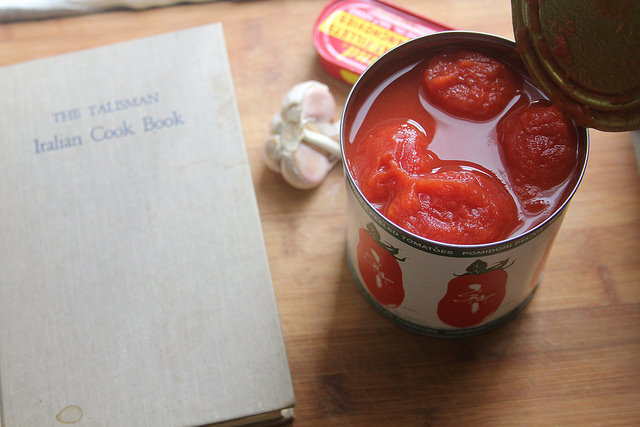 28-oz can whole peeled plum tomatoes, roughly chopped or crushed by hand