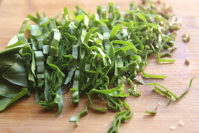 So I quick-pickled the stems to soften their oniony blow. The milder shoots were slivered up into chiffonades to toss in just at the end.