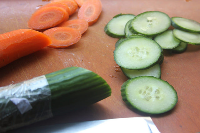 Fresh vegetables like julienned cucumber and carrot are requisite—add some fresh bean sprouts if you can find them, too. Or, blanch and shock some bok choy until crisp-tender, and sliver them from stalk to leaf for a healthy dose of greens.