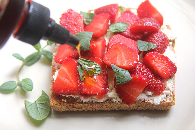 Strawberry Toast with Farmer Cheese, Mint and Hot Honey