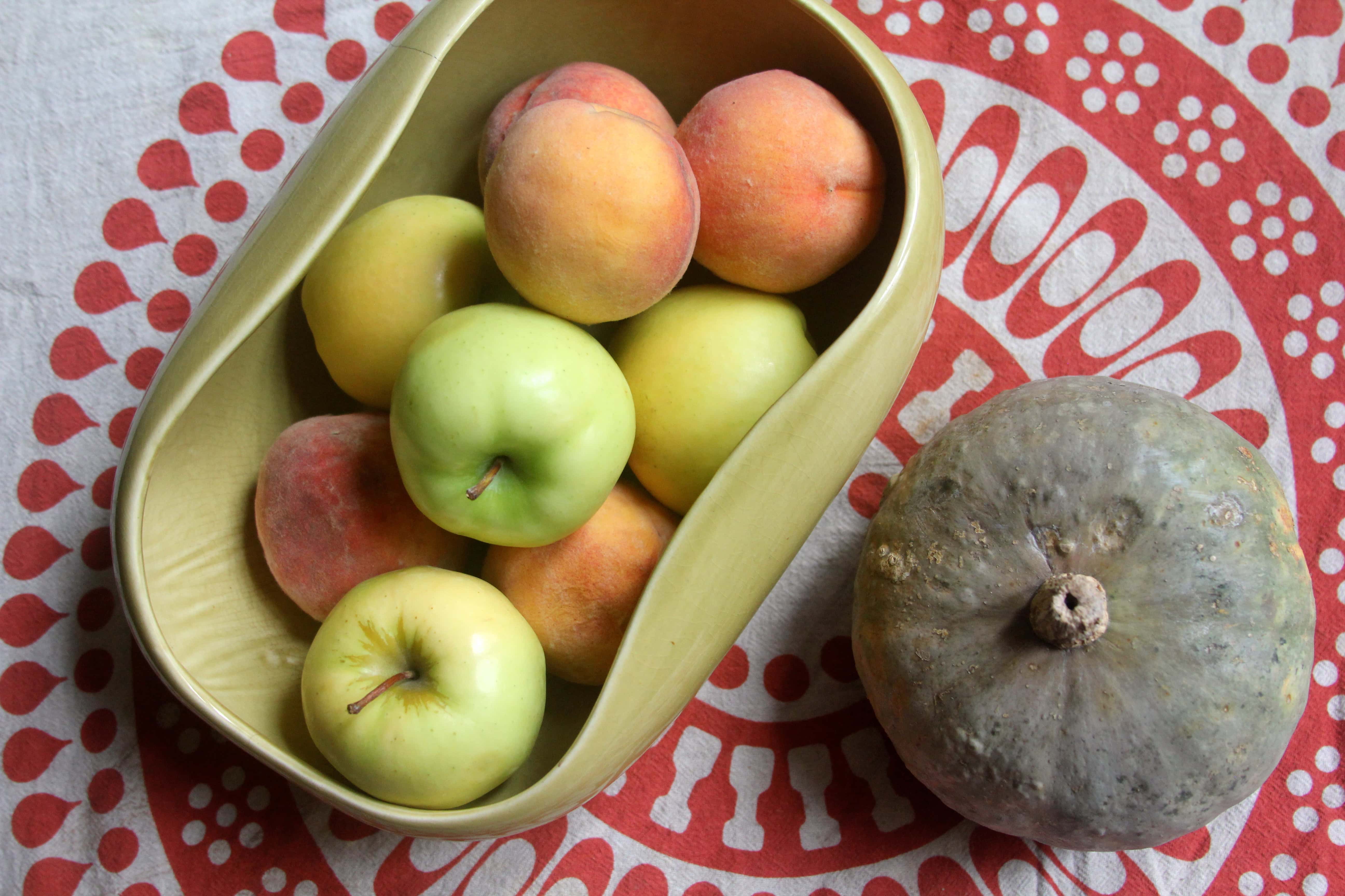 I’ve had an earworm for the last few weeks. Ever since finding a record called “Apples, Peaches, Pumpkin Pie” by Jay & the Techniques, the title track has been playing in my head nearly constantly. It’s a great song—have a listen. This pie is not what the song is actually about, but I just couldn’t shake the idea of making it. In an uncanny confluence of new seasonal fruits and old musical discoveries, apples, peaches and pumpkins all happen to be in season locally—starting from about the time that I bought this record. And they have been decorating my living room, side by side.