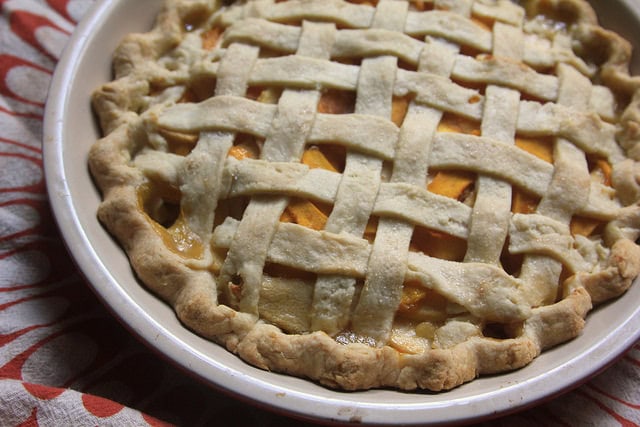 The squash and peaches that went into this pie had nearly the same color, but very different textures and flavors. Folded together with apples, this pie filling has a lot going on. You could say that the apples, peaches and pumpkins are playing a game of hide-and-seek in this pie. Go ahead and find them as you dig in. As Jay & The Techniques sang, “Who’s not ready? Holler “I”!